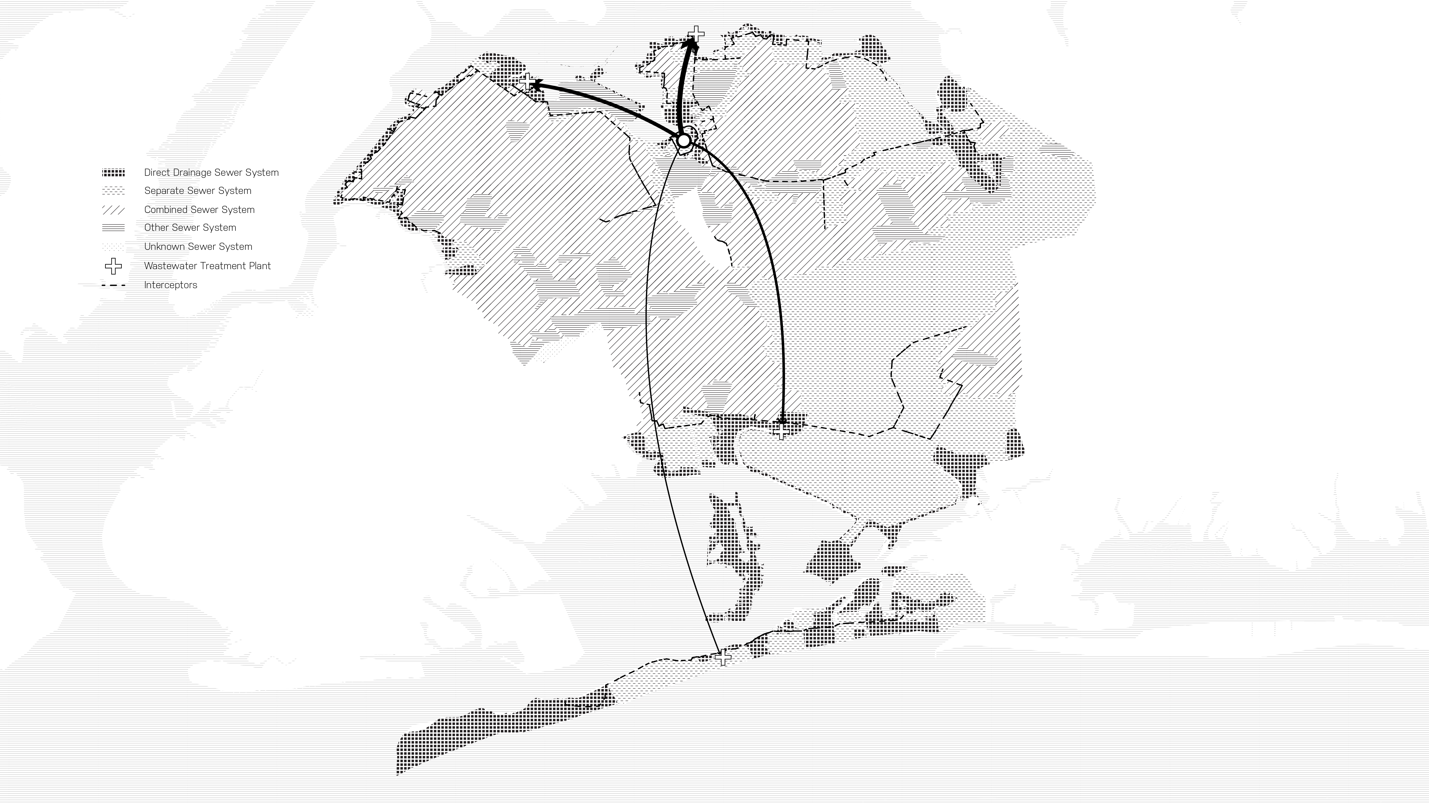 The mapping produced sought to access and understand the sewer infrastructure in Queens, its relationship to the pattern of urbanization aboveground, and where sewerage may become accidentally sensible due to infrastructural failure. This is done by examining sewersheds, networks of pipes and discharge points, intersections and pockets formed by sewerage, and heat maps that distill the areas that tend to be the most vulnerable or compromised through the collection of complaint calls and the neighborhood’s relationship to topography.